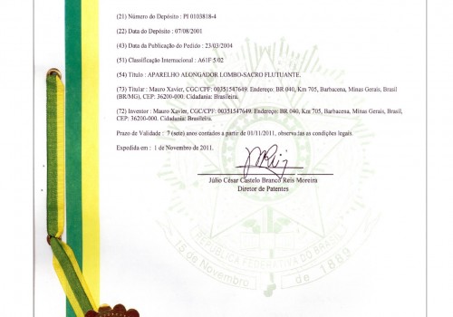 Carta de Patente do ColeteCertificado de Inovação Tecnológica - SEBRAECorrespondência do SUS /...